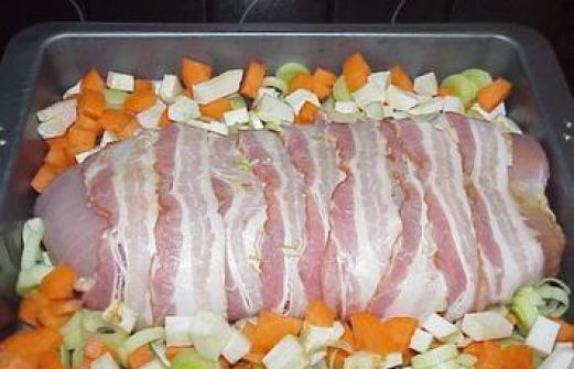 Zutaten für Personen Rezept mit Bild: Putenbraten mit Pfeffersoße Bild einstellen 1 kg Putenbrust Sojasoße dunkel 125 gr Frühstücksspeck 1 Bund Suppengrün frisch 1 EL grüner Pfeffer 250 ml Sahne 2 [...]