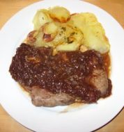 Zutaten für Personen Bild einstellen 4 Stk. Rostbraten 1 Stk. Zwiebel 2 Stk. Knoblauch frisch 1 Dose Tomatenmark Paprika edelsüß 125 ml Rotwein 500 ml Hühnerbrühe Senf Öl Salz Pfeffer 500 g Zwi [...]