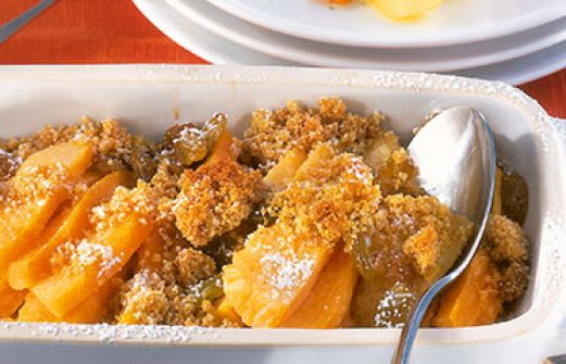 Kürbisgratin mit Rumrosinen Zutaten 150 g Rosinen 80 ml brauner Rum 1,2 kg Kürbis (geputzt gewogen) 10 EL Semmelbrösel 75 g Sahne 1 Päckchen Vanillezucker 80-100 g Butter 5 EL brauner Zucker Fett für die Form 150 g Rosinen , 80 ml brauner Rum , 1,2 kg Kür [...]
