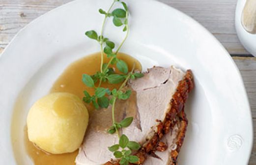 Schweinebraten mit knuspriger Kruste in Biersauce Zutaten 1 1/2 kg Schweineschulter (mit Schwarte) Salz 2 TL Kümmelsamen 1/2 TL Korianderkörner 1/2 TL Senfkörner 1/2 TL getrockneter Majoran 2 EL zimmerwarmes Schweineschmalz 4 Zwiebeln 4 Knoblauchzehen 2 Äpfel ca. 500 g Sp [...]