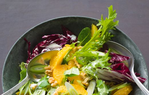 Wintersalat mit Orangen Zutaten 3 Bio-Orangen 150 g Sahnejoghurt (mind. 10 % Fett) Salz Pfeffer etwas Zucker 1 Msp. gemahlener Kreuzkümmel 1 Pck. Salatmischung (z. B. Radicchio, Frisée und Feldsalat, ca. 200 g) 8 Walnusshälften 1 Bund Frühlingszwiebeln 3 Bio-Orangen [...]