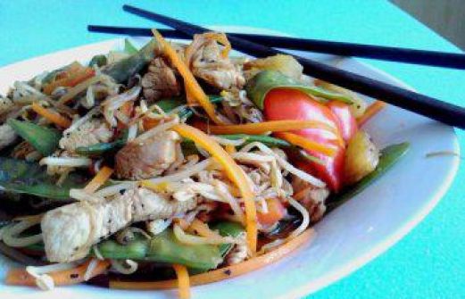 Zutaten für Personen Rezept mit Bild: Wokgemüse Bild einstellen 300 g Putenschnitzel 250 g Karotten 250 g Paprika 175 g Mungobohnensprossen 200 g Zuckerschoten 200 g Ananas 2 TL Sesamöl 2 EL So [...]