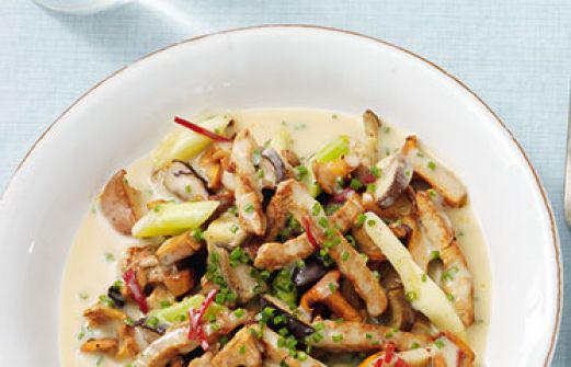 Geschnetzeltes Schweinefilet mit Waldpilzen Zutaten 1 großes TK-Schweinefilet (ca. 600 g) Pfeffer 1/2 EL edelsüßes Paprikapulver 1 Bund Frühlingszwiebeln 1 rote Chilischote 3 EL Öl Salz 1 Pck. TK-Waldpilzmischung (380 g) 2 TL Mehl 150 ml Hühner- oder Gemüsebrühe 150 g Sahne [...]