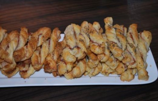 Zutaten für Personen Rezept mit Bild: Schinken-Blätterteigstangen Bild einstellen 2 Rollen Blätterteig aus dem Kühlregal 100 g Alpenschinken in dünnen Scheiben 4 Eigelb 1 EL Mohn oder Sesam Rez [...]