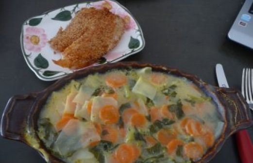 Zutaten für Personen Rezept mit Bild: Aufläufe : Kohlrabi - Möhren - Auflauf mit Tilapia Bild einstellen 1 Stück Kohlrabi frisch 3 Stück Möhren mittlere 1 Becher Crème fraîche mit Kräutern 1 Becher Gemüsebr [...]