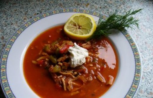 Zutaten für Personen Rezept mit Bild: Soljanka Bild einstellen 200 gr. Kasseler Kamm 1 Stk. Zwiebel gehackt 1 Stk. Gewürzgurken Sauerkonserve 3 Stk. Paprika rot 1 Flasche Ketchup - klein 1 TL Paprik [...]