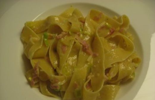 Zutaten für Personen Rezept mit Bild: Pappardelle mit Lauch Bild einstellen 1 Pk. Papardelle - breite Bandnudeln 1 Stange Lauch 15 dag Beinschinken Sahne Salz Pfeffer Peperoncinogewürz 0.5 [...]