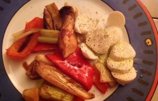 Zutaten für Personen Rezept mit Bild: Antipasti Bild einstellen 3 Paprika rot 0.5 Aubergine 1 Pastinake 3 Stangen Staudensellerie 1 Porree 5 Charlotten 1 Clementine 3 Knoblauchzehen gehac [...]