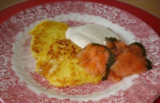 Zutaten für Personen Bild einstellen 1 Bund Dill 200 g Crème fraîche 1 TL Zitronensaft 1 TL Senf Salz, Pfeffer aus der Mühle Zucker 200 g Räucherlachs 300 g Kartoffelpuffer TK 40 g Butterschmalz [...]