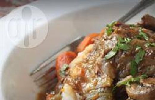 Portionen: 8 2,25 kg Rinderbraten mit Knochen (aus der hohen Rippe) Salz Pfeffer 1 EL Mehl, mehr nach Bedarf 30 ml Pflanzenöl 225 g Pilze, in Scheiben geschnitten 1 mittelgroße Zwiebel, gehackt 2 Knoblauchzehen, gehackt