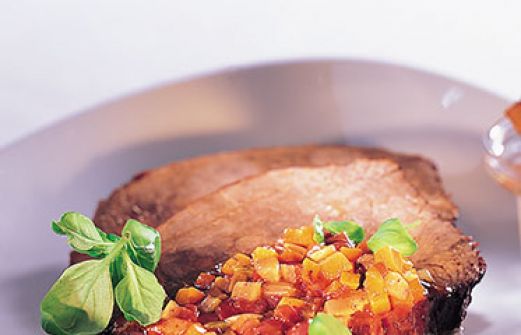 Rinderschmorbraten in Rotwein Zutaten 1,2 kg Rinderbraten (Unterschale, Keule oder Blume) Salz schwarzer Pfeffer aus der Mühle 2 Möhren 2 Stangen Sellerie 1 Zwiebel 3 Knoblauchzehen einige Zweige frischer Rosmarin 1 Bund Basilikum 4 Tomaten 2 EL Butter 2 EL Olivenöl ⅜ [...]