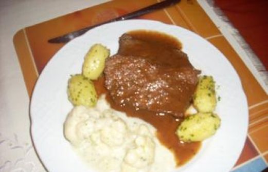 Zutaten für Personen Rezept mit Bild: Rinderschmorbraten NT in Preiselbeer-Rotweinsoße und Petersilien-Butterkartöffelchen Bild einstellen 1 Kilogramm Rindfleisch Schulter Für die Soße 1 Stück Zwie [...]