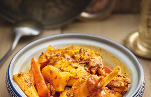 Gemüse-Tajine mit Kaninchen Zutaten 1 Döschen Safranfäden (0,1 g) 400 ml Gemüsebrühe 1 großes Bund Koriander 1/2 Bund Petersilie 2 Knoblauchzehen je 1 EL edelsüßes Paprikapulver und gemahlener Koriander je 2 EL Ras-el-hanout (marokkanische Gewürzmischung) und rosenscharfes Papri [...]