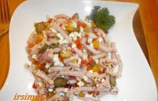 Zutaten für Personen Rezept mit Bild: Salate: Wurstsalat mit Feta Bild einstellen 300 g Fleischwurst 1 Beutel Patros Miniwürfel Mediterrane Kräuter 0.5 Paprika rot 0.5 Paprika gelb 10 Stück Cornichons [...]