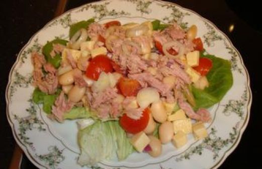 Zutaten für Personen Rezept mit Bild: Thunfisch-Bohnensalat Bild einstellen 1 Dose Thunfisch in Wasser 150 g Cocktailtomaten 1 rote Zwiebel 1 Schalotte 300 g Käse nach Wahl am Stück 1 Kl. Glas weiße [...]