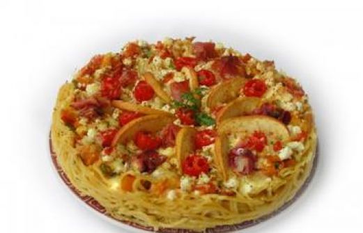Zutaten für Personen Rezept mit Bild: Spaghetti-Pizza mit Schafskäse, Gemüse und Schinkenspeck Bild einstellen 200 Gramm Spaghetti 1 Stück Zwiebel 1 EL Olivenöl extra vergine 2 Stück Paprika 200 G [...]