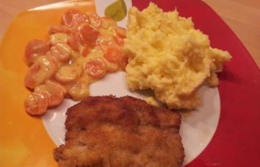 Zutaten für Personen Rezept mit Bild: Schnitzel mit Kartoffelpüree und Sahne-Möhren Bild einstellen 800 g Kartoffeln 800 g Möhren 1 Zwiebel 4 EL Butter 1 EL Zucker 100 ml Hühnerbrühe instant 400 [...]