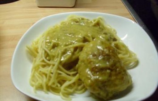 Zutaten für Personen Rezept mit Bild: Hähnchen in fruchtiger Currysoße auf Spaghetti Bild einstellen 4 Hähnchenoberschenkel 1 EL Mehl Salz und Pfeffer, Curry, Lorbeerblatt Öl 150 ml Ananassaft 25 [...]