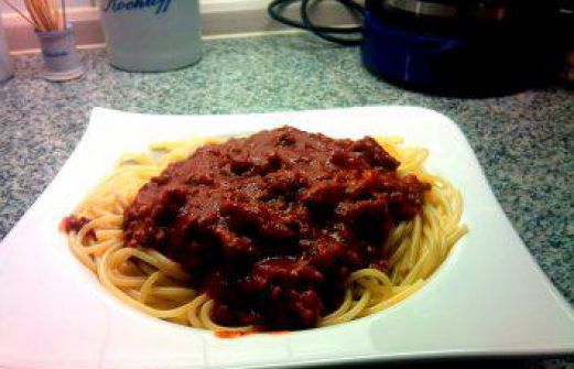 Zutaten für Personen Bild einstellen 500 g Spaghetti 100 g Möhren 250 g Tomatenmark 500 g Hackfleisch gemischt 100 g Butter Chilipulver 10 EL Rotwein 1 Knoblauch-Zwiebel 1 El Olivenöl 2 EL Gemüsebrühe-Pulv [...]