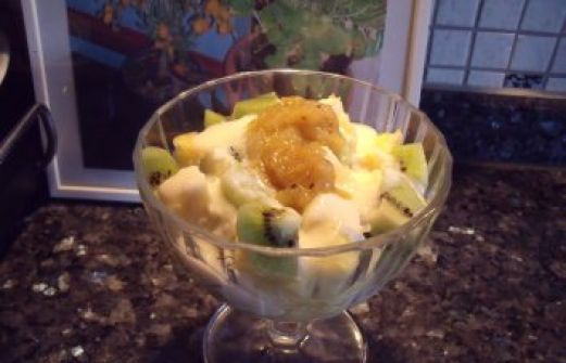 Zutaten für Personen Rezept mit Bild: Ananas und Kokos Bild einstellen 1 Stk. große reife Ananas 4 Stk. Kiwi 4 EL Pina Colada oder Batida de Coco 400 g Joghurt 2 EL Honig 1 EL Brauner Zucker 3 EL K [...]