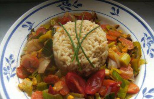 Zutaten für Personen Rezept mit Bild: Reis im Gemüsebett Bild einstellen 150 Gramm Reis 100 ml Weiswein 250 ml Geflügelbrühe Salz und Pfeffer und eine Zwiebel 50 gr. Butter 2 Stangen Porree frisch [...]