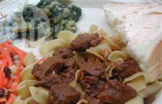 Portionen: 6 1 kg Rindfleisch, gewürfelt 1 große Zwiebel, gewürfelt 8 EL Ketchup 2 EL Worcesterhiresoße 1 EL brauner Zucker