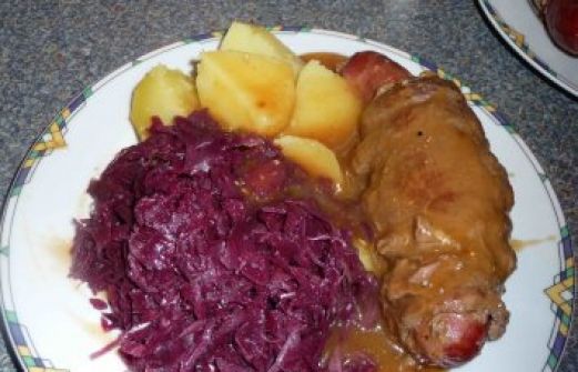 Zutaten für Personen Rezept mit Bild: Rouladen a la Manu Bild einstellen 4 Rind Rouladen-waschen+trockentupf en 6 Knacker 1 Zwiebel frisch-abziehen,vierteln+ent blättern 1 Gewürzgurke Sauerkonserve. abge [...]