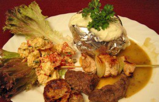 Zutaten für Personen Bild einstellen 400 gr. Lammfilet 400 gr. Rumpsteak 400 gr. Schweinefilet 500 gr. Putenbrustfilet Paprikapulver Öl 5 Stk. Backkartoffeln 500 gr. Magerquark 400 gr. Schafskäse 3 Stk. Z [...]