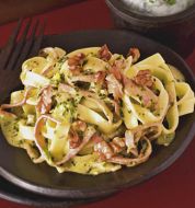 Zutaten für Personen Bild einstellen 1 Knoblauchzehe 1 Bund Basilikum 1 Handvoll Pinienkerne oder Mandelkerne 1 Handvoll Parmesan gerieben 0.5 Zitrone Salz, Pfeffer, Olivenöl Rezept Zubereitung gehacktes grünes P [...]