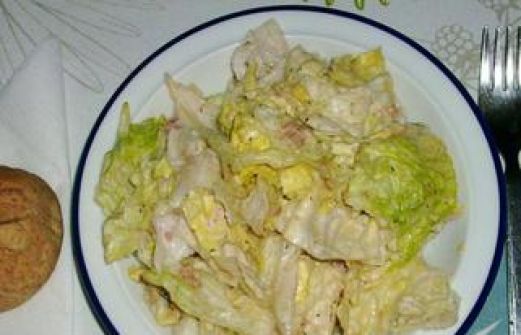 Zutaten für Personen Bild einstellen 1 Kopf Eisbergsalat 1 kl. Dose Thunfisch im eig. Saft 3 EL Mayonnaise 50% Fett 2 EL Tomatenketchup 3 EL Apfelessig Knoblauchpulver Cayennepfeffer Salz Dill Fischgew [...]