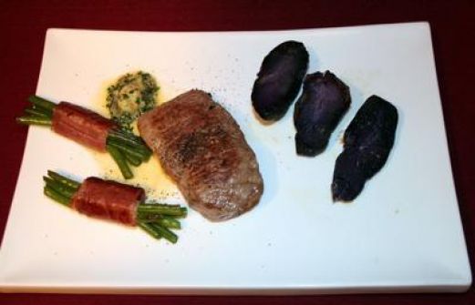 Zutaten für Personen Bild einstellen 2 kg Rumpsteak 4 Stück Vitelotte-Kartoffeln 300 g Bohnen grün frisch 200 g Kochschinken 1 EL Butter 1 Prise Salz 1 Bund Kräuter 1 Schuss Olivenöl Rezept Zubereitu [...]