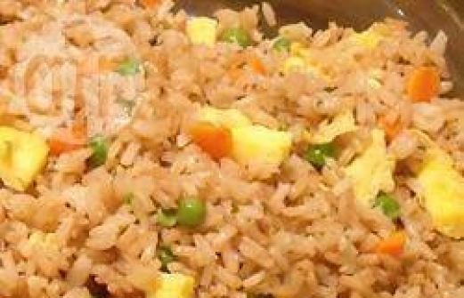 Portionen: 2 2 EL Öl 2 Knoblauchzehen, in Scheiben geschnitten 1 Karotte, gestiftelt 4 Frühlingszwiebeln, in Scheiben geschnitten 1 großes Ei, verkleppert 1 große Schüssel gekochter Reis 2 EL Sojasauce