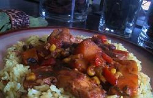 Portionen: 6 1 EL Olivenöl 1,3 kg Hähnchenschnenkel ohne Haut Salz Pfeffer 4 EL frische Korianderblätter 2 große Süßkartoffeln, geschält und in große Stücke geschnitten 1 rote Gemüsepaprika, in Streifen geschnitten 400 g schwarze Bohnen aus der Dose, abgespült und abg [...]