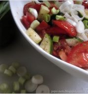 Portionen: 2 1 kg Tomaten, klein geschnitten 1 Zwiebel, fein gehackt 3 EL Öl (kein Olivenöl) Salz Pfeffer Basilikum oder Petersilie, fein gehackt (optional)