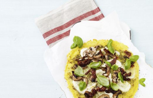 Polenta-Pizza Zutaten 600 ml Gemüsebrühe 2 Knoblauchzehen Salz 200 g Instant-Polenta 100 g geriebener Emmentaler 2 Kugeln Mozzarella (je 125 g) 100 g braune Champignons 100 g getrocknete Tomaten (in Öl) 4 EL Pesto alla genovese (aus dem Glas) Pfeffer 1 Handvoll Basilikumb [...]