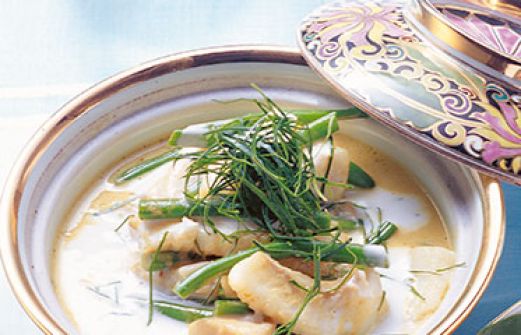 Fischcurry mit Bohnen Zutaten 300 g feine grüne Bohnen Salz 600 g Rotbarschfilet 4 Kaffir-Limettenblätter 1 Dose Kokosmilch (400 ml) 1 EL gelbe Currypaste 1/4 l Gemüsebrühe 2 EL asiatische Fischsauce (Fertigprodukt) 2 TL Palm- oder brauner Zucker Pfeffer 1-2 EL Limetten- od [...]