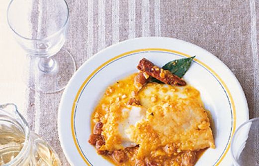 Klippfisch mit Rosinen Zutaten 500 g Klippfisch 50 g Rosinen 2 Zwiebeln 8 Sardellenfilets (in Öl) 3 EL Mehl 2 EL Olivenöl 2 EL Pinienkerne 1 Lorbeerblatt 1 Zimtstange ½ TL Zucker Muskatnuss, frisch gerieben 400 ml Gemüsefond (aus dem Glas, ersatzweise Instant-Gemüsebrühe [...]