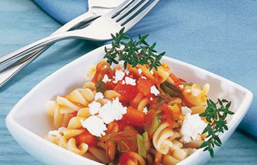 Fusilli mit Safrantomaten Zutaten 500 g Fleischtomaten 1/2 Bund Frühlingszwiebeln 500 g Fusilli Salz 1 EL Olivenöl 2 EL Pinienkerne 1 Döschen gemahlener Safran Pfeffer 1 Prise Zucker 50 g Schafkäse, fein zerbröckelt 500 g Fleischtomaten , 1/2 Bund Frühlingsz [...]