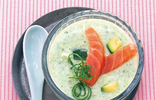 Kalte Zucchinisuppe mit Lachs Zutaten 400 g schlanke Zucchini 2 zarte Stangen Staudensellerie (ca. 150 g) 2 Frühlingszwiebeln 1 Bund Petersilie 500 g Vollmilchjoghurt Saft von 1 Limette 100 g Sahne Salz Pfeffer einige Tropfen Tabasco 100-150 g Graved- oder Räucher-Lachs [...]
