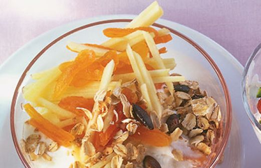 Knuspermüsli mit Apfel Zutaten 6 EL kernige Haferflocken 2 EL Kürbiskerne 2 EL Haferkleieflocken 1 Päckchen Vanillezucker 6 Trockenaprikosen (ungeschwefelt) 1 großer Apfel 300 ml fettarme Dickmilch (1,5 % Fett) 6 EL kernige Haferflocken , 2 EL Kürbiskerne , 2 EL [...]