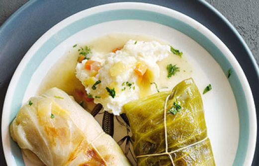 Kohlrouladen mit Kartoffelpüree Zutaten 1 altbackenes Brötchen 250 g Weißkohl Salz 2 Zwiebeln 250 g gemischtes Hackfleisch 1 Ei (Größe M) Pfeffer 1 TL getrockneter Majoran 1 Bund Suppengrün 2 EL Butterschmalz (oder neutrales Öl) 250 ml Gemüsebrühe (Instant) 400 g mehligkoc [...]