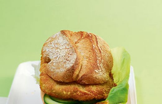 Käse-Schnitzel-Sandwich Zutaten 4 Schweineschnitzel (à ca. 100 g) Salz Pfeffer 4 EL Semmelbrösel 50 g fein geriebener, alter Gouda oder Parmesan 1 Ei 2 EL Mehl 2 EL Butterschmalz 4 Kopfsalatblätter 1 Minigurke (ca. 120 g) 4 große Brötchen (z. B. Baguettebrötchen) 4 EL Man [...]