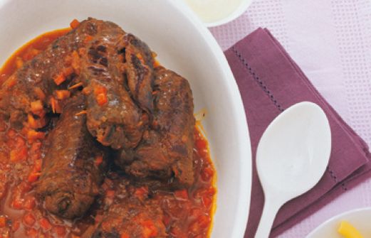 Rinderrouladen Zutaten 100 g fetter Speck 2 Salbeiblättchen 2 Zweige Thymian 1/4 Bund Petersilie 2 Gewürzgurken 2 TL Kapern (nach Belieben) 1 EL scharfer Senf Pfeffer 4 Rinderrouladen (je etwa 160 g) Salz 1 Zwiebel 1 Möhre 1 Stück Knollensellerie (etwa 100 g) 2 EL Öl [...]