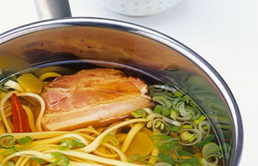 Ramen mit Speck Zutaten 1 Bund Frühlingszwiebeln 3 Chilischoten 2 Knoblauchzehen 1 Stückchen frischer Ingwer (etwa 2 cm) 500 g durchwachsener Räucherspeck 1/4 l Reiswein oder milder Sherry 1 TL Zucker 1 TL Fünf-Gewürze-Pulver 150 g asiatische Weizennudeln (am besten japanisch [...]