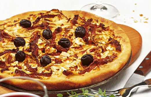 Kartoffelpizza Zutaten 700 g mehlig kochende Kartoffeln Salz 100 g getrocknete Tomaten in Öl 1 Gemüsezwiebel 2 Knoblauchzehen 300 g Fetakäse 200 g Mehl 2 TL Backpulver 4 Eier 2 EL Öl je 2 TL getrockneter Rosmarin und Oregano Pfeffer Fett für die Form 700 g me [...]