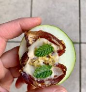 Dattel-Pflaumen-Snack Zutaten 12 Scheiben Frühstücksspeck, hauchdünn geschnitten 12 getrocknete Datteln 1 EL gehacktes Koriandergrün 12 große Backpflaumen ohne Stein 1 EL gehackte Rosmarinnadeln 12 Scheiben Frühstücksspeck, hauchdünn geschnitten , 12 getrocknete Dat [...]