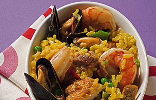 Paella Valenciana Zutaten 2 Hähnchenunterkeulen oder 1 Hähnchenkeule Salz, schwarzer Pfeffer 125 g Schweineschnitzel 1 kleine Zwiebel 1 Knoblauchzehe je 1 kleine rote und grüne Paprikaschote 3 EL Olivenöl 150 g Rundkornreis (z.B. Risotto-, Arborio-Reis) 200 ml Geflügelfond (G [...]
