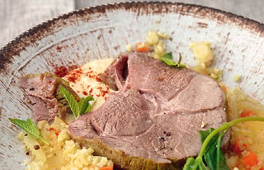 Lammkeule im Safransud Zutaten 1 Lammkeule mit Knochen (ca. 1,2 kg) 1 Gemüsezwiebel (ca. 250 g) 2 Knoblauchzehen 10-15 Safranfäden 1 TL Salz Meersalz 1 Möhre (ca. 100 g) 100 g Staudensellerie 1 kleiner säuerlicher Apfel (ca. 100 g, z. B. Boskop) 2 EL Olivenöl 250 g Instant [...]