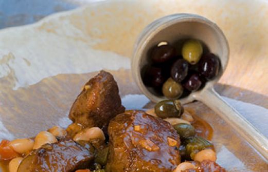 Lamm mit Bohnen Zutaten 250 g getrocknete weiße Bohnenkerne 800 g Lammfleisch ohne Knochen (z. B. Keule oder nicht zu fette Schulter) Salz Pfeffer 1 Zwiebel 4 Knoblauchzehen 1 Stange Staudensellerie 1 Möhre je 2 Zweige Rosmarin und Thymian 1 getrockneter Peperoncino 4 E [...]