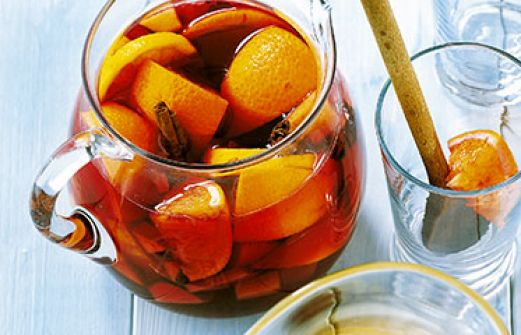 Sangria Zutaten 2 kleine unbehandelte Orangen 1 unbehandelte Zitrone 1 Apfel 2 Pfirsiche 2 EL Zucker 1 Stange Zimt 2 EL Zitronensaft 1/4 l Orangensaft 6 cl Brandy (ersatzweise Portwein) 2 Flaschen Rotwein (à 0,75 l; z. B. Rioja) 2 kleine unbehandelte Orangen , [...]